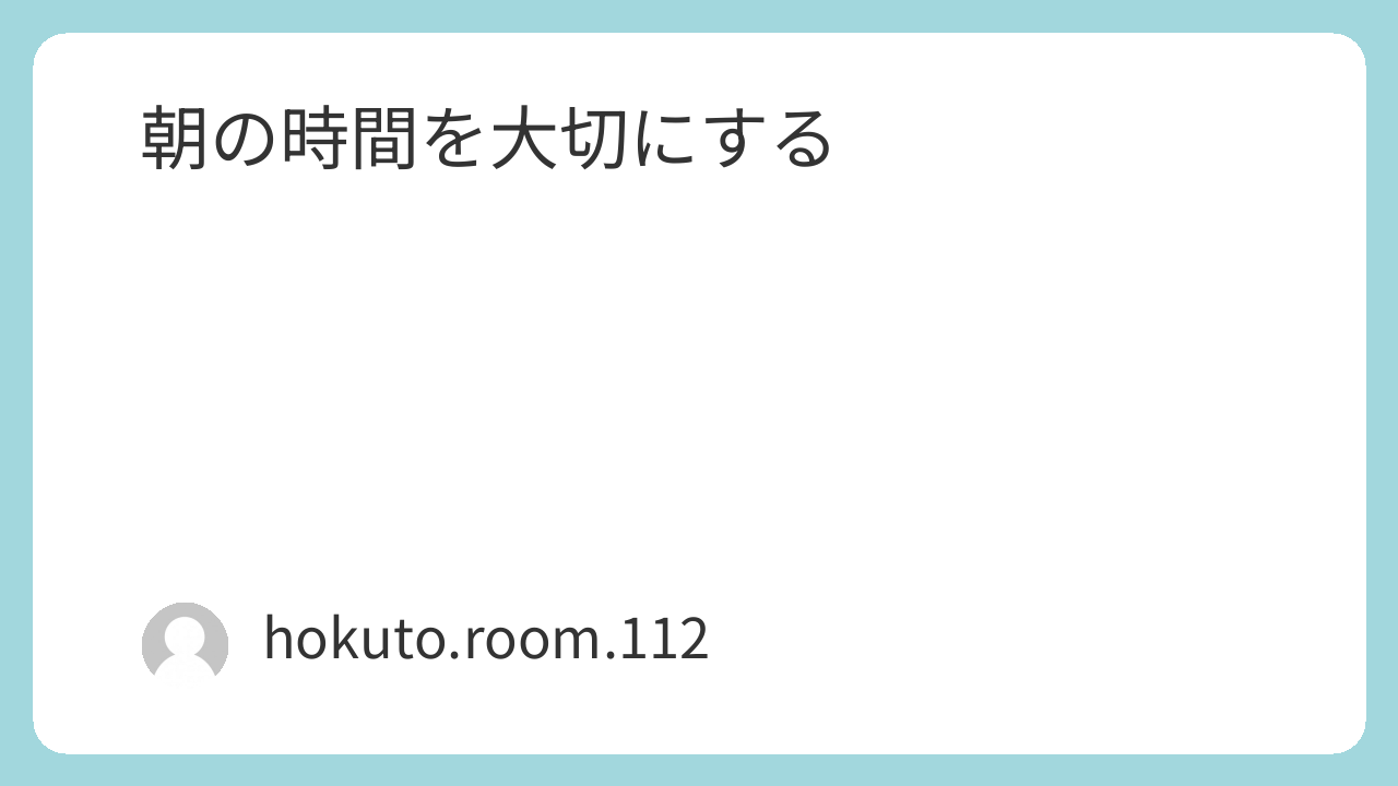 私がやりたいことを色々やろうと思うと、どうしても、朝の時間に諸々が集中します。